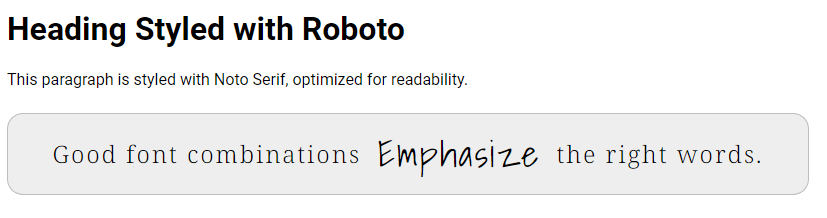 <p class='serif'>Good font combinations <span class='cursive'>Emphasize</span> the right words..</p>